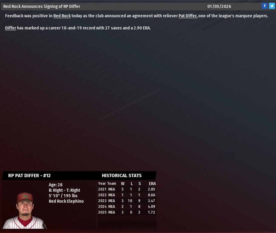 Red Rock Elephino have signed free agent reliever Pat Differ