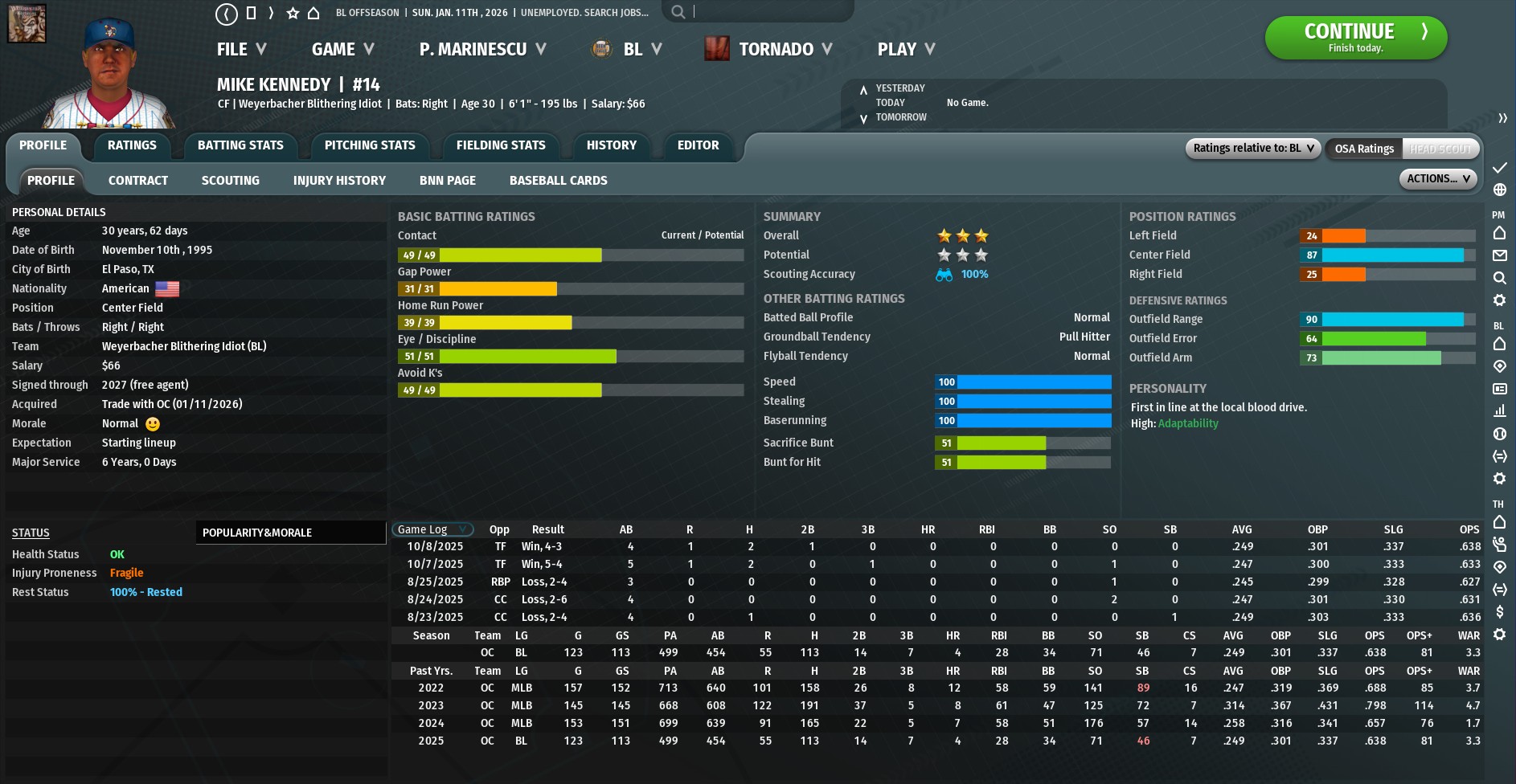 Odious Cellars Rubied Perspective have traded center fielder Mike Kennedy to the Weyerbacher Blithering Idiot in exchange for reliever Joey Pond and left fielder Andrew Halbrook