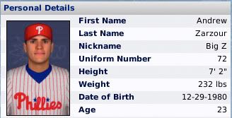 Forgot to post this earlier -- the vitals on our young Mr. Zarzour, in his new Phillies digs ... i don't know if Philly players wear blue underneath the jersey but I liked the look...