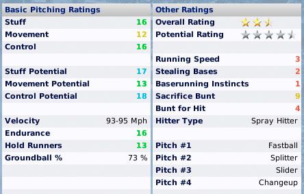 ![]() I must admit, the AI was pretty good to Big Z as he made the transition from OOTP5 ratings, then to OOTP8 and now to OOTP9 ... the future looks bright (of course, if my scout is correct)
