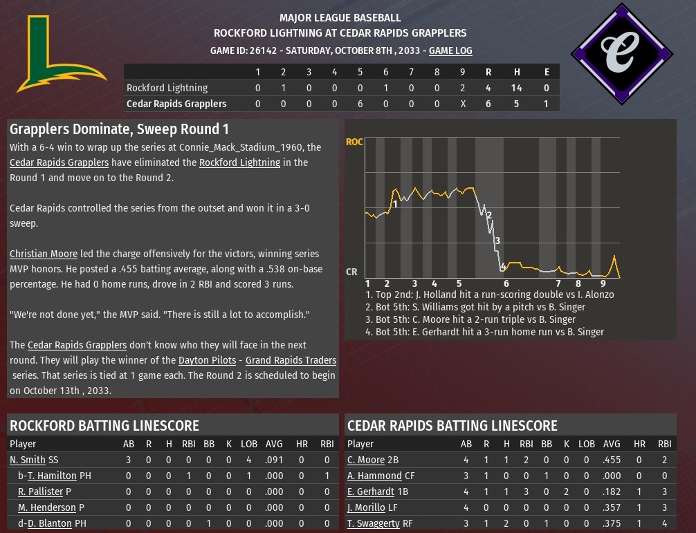 MBL news: Oct. 8 -- NLCS Game 3 -- Cedar Rapids 6, Rockford 4, Grapplers win series 3-0