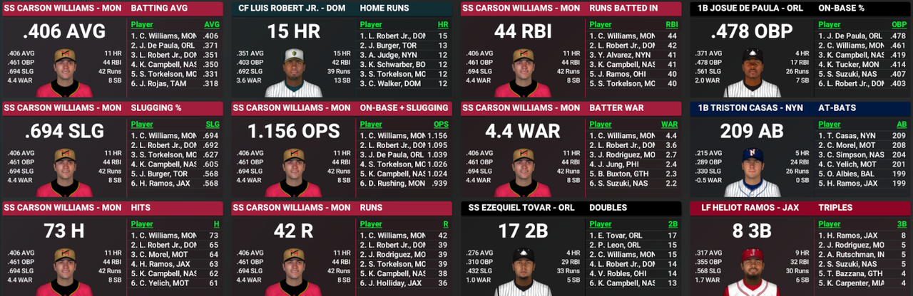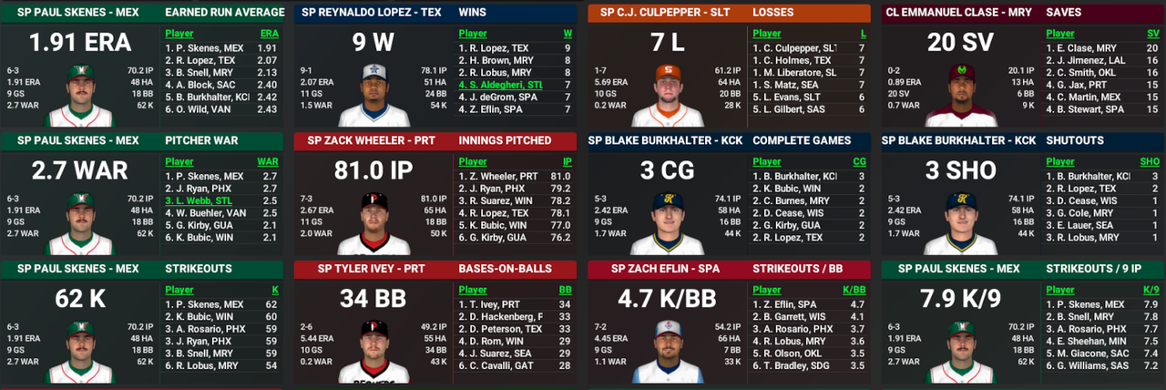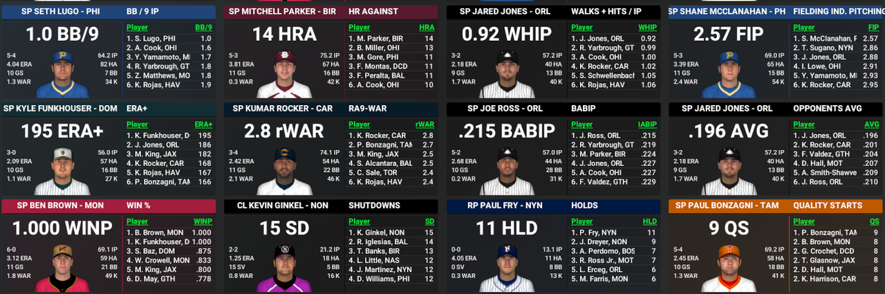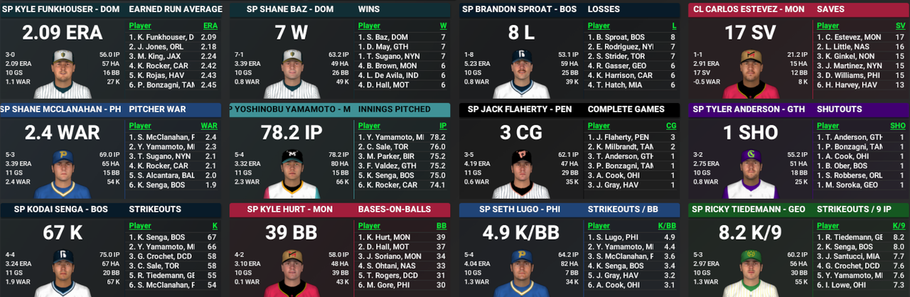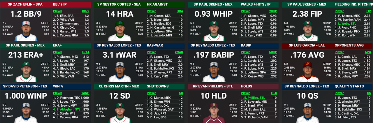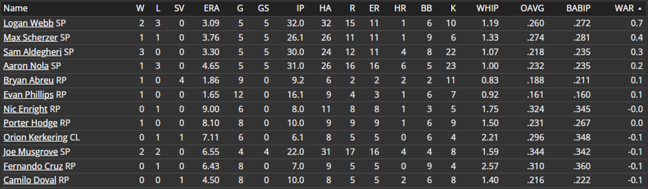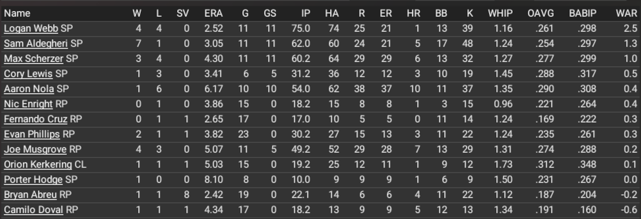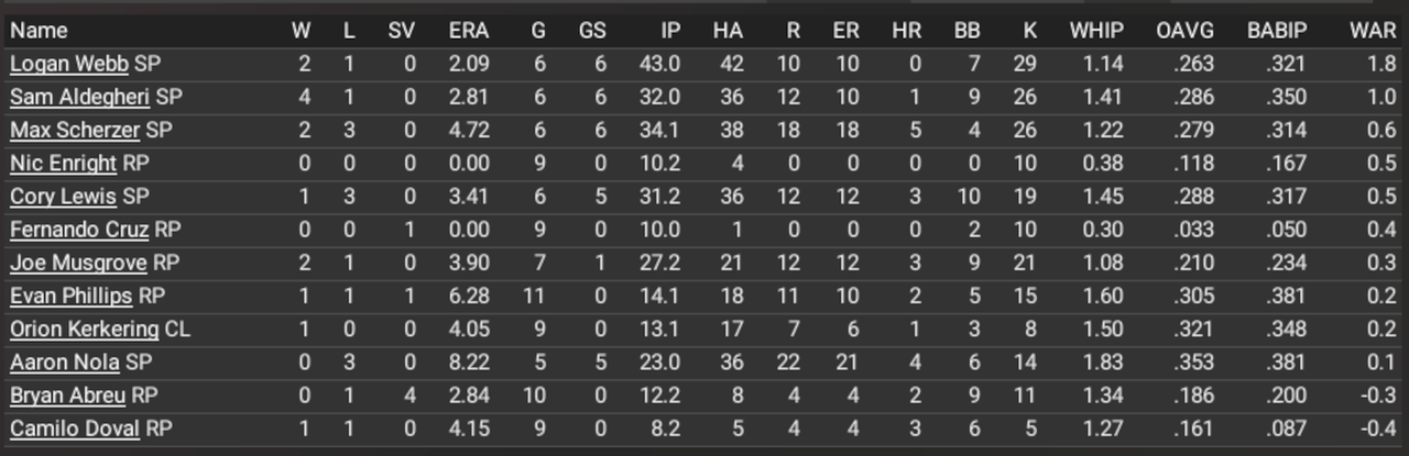 ------------------------------ L. Webb - 75, 42, 32, 55, 52, M. Scherzer - 57, 40, 46, 47, 50, A. Nola - 47, 59, 56, 75, 28, S. Aldegheri - 49, 60, 61, 62, 46 J. Musgrove - 69, 40, 22, 19, |