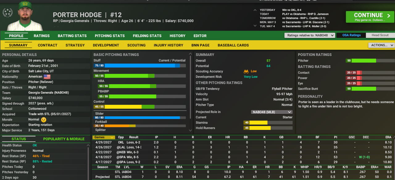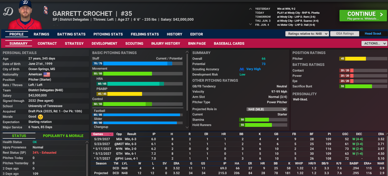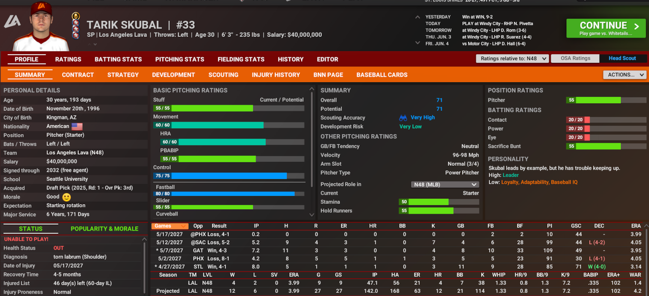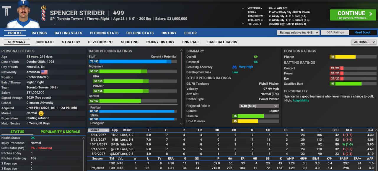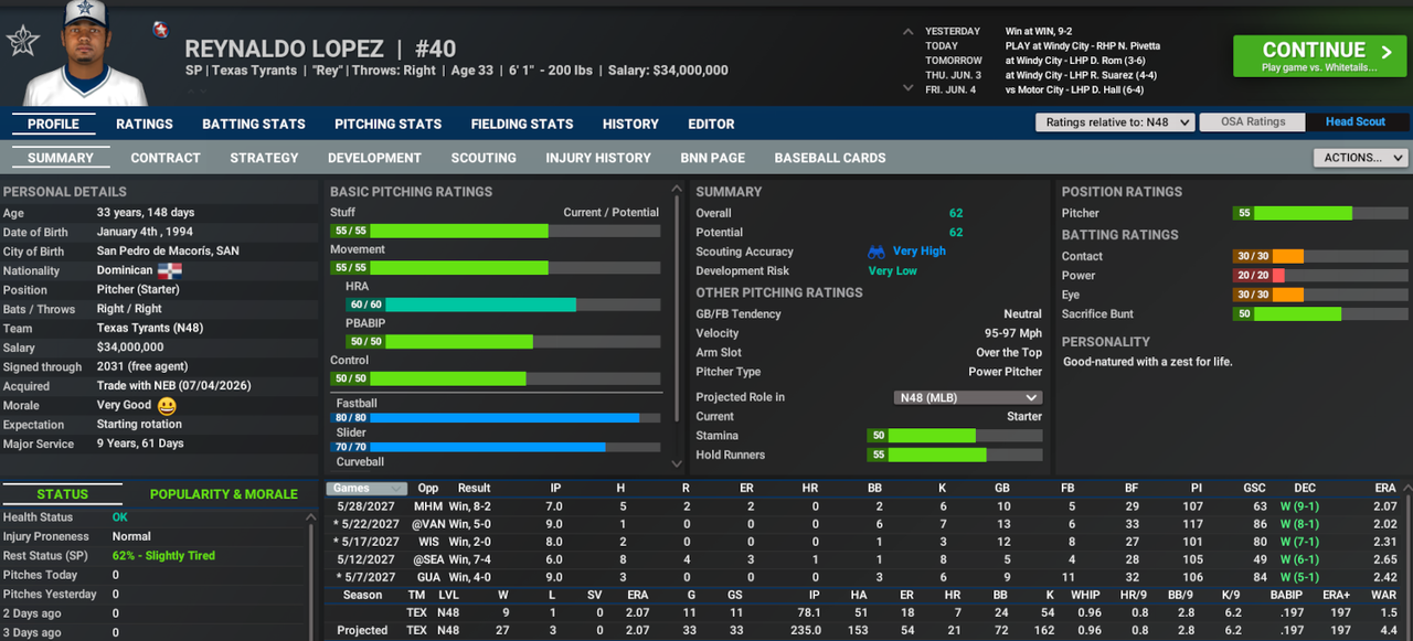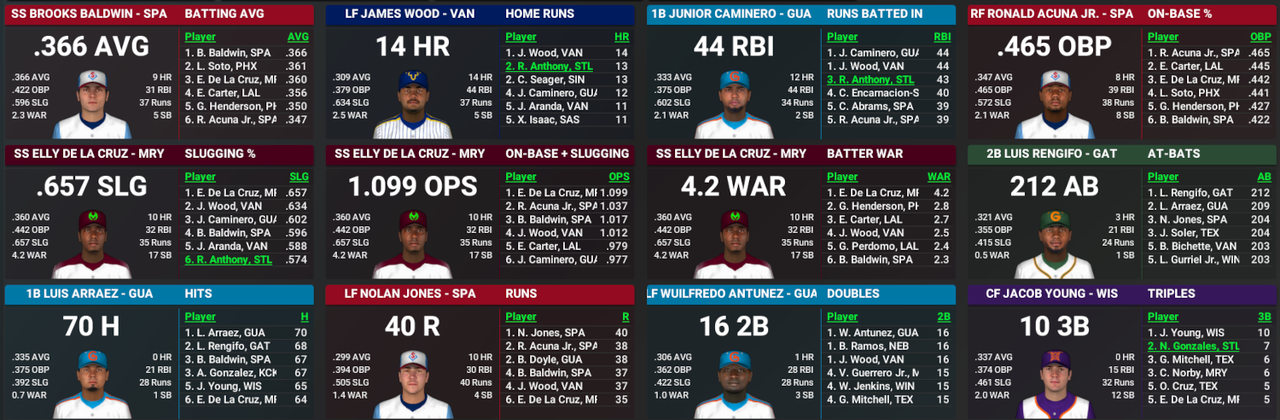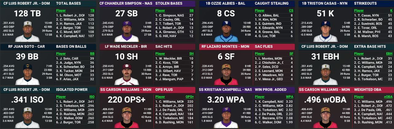 ------------------------------ L. Webb - 75, 42, 32, 55, 52, M. Scherzer - 57, 40, 46, 47, 50, A. Nola - 47, 59, 56, 75, 28, S. Aldegheri - 49, 60, 61, 62, 46 J. Musgrove - 69, 40, 22, 19, |