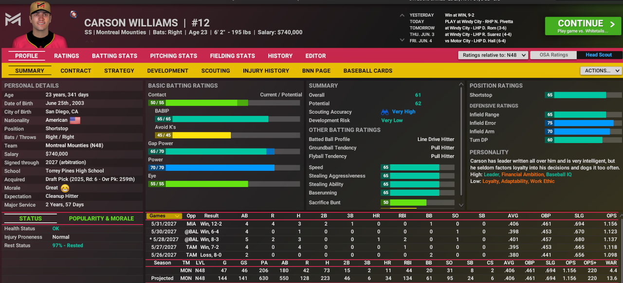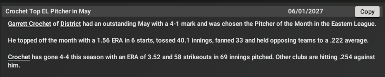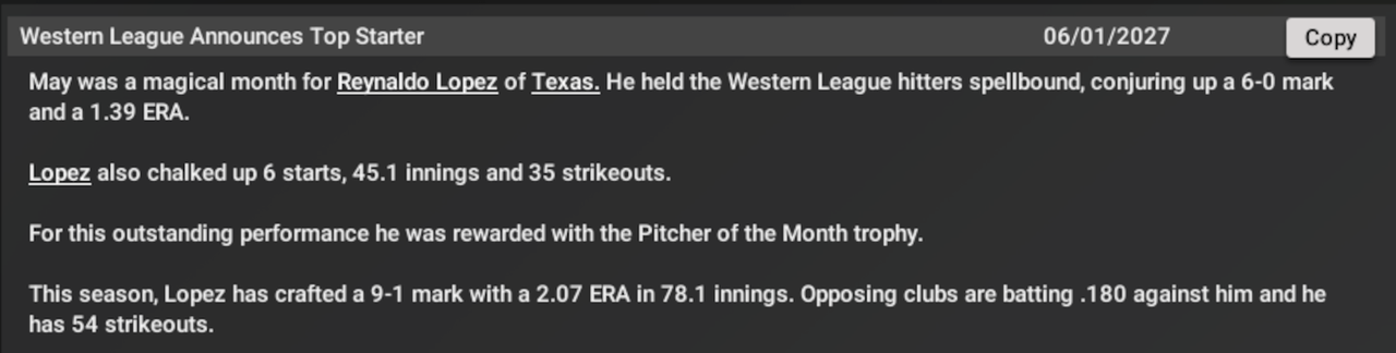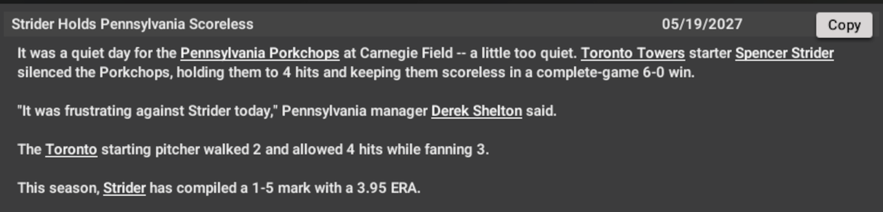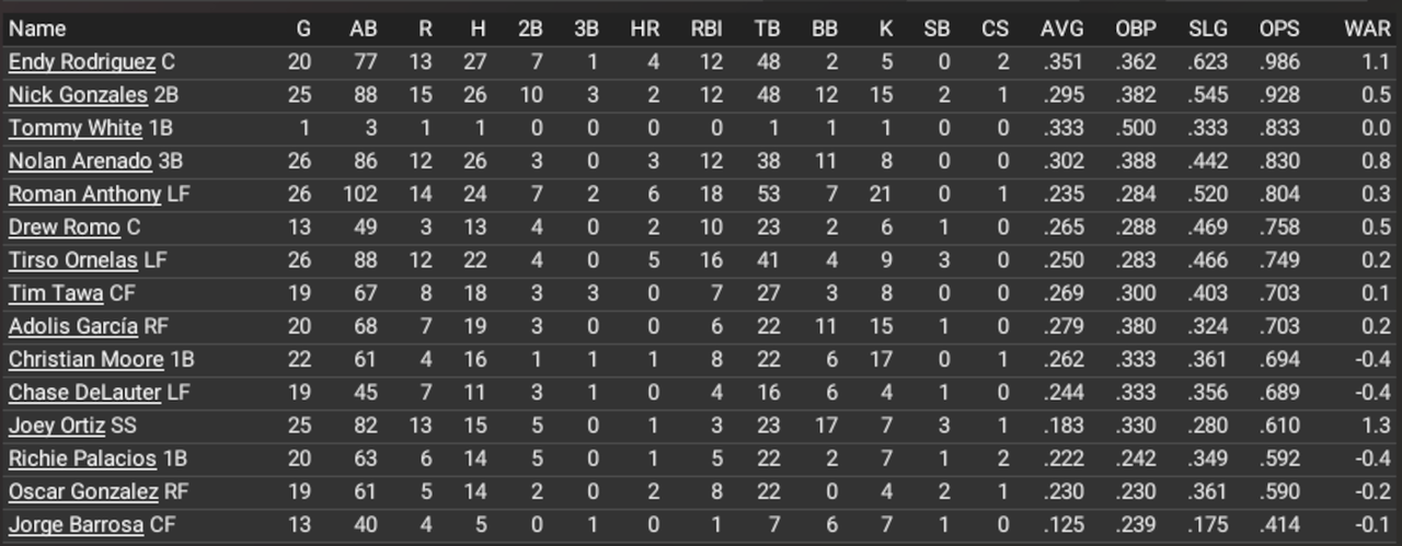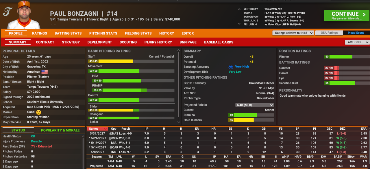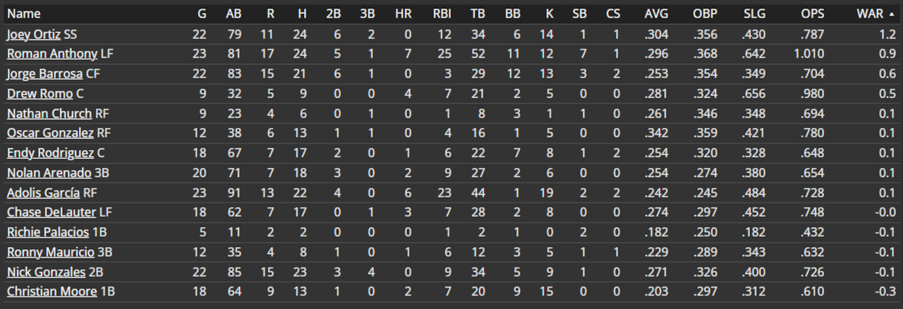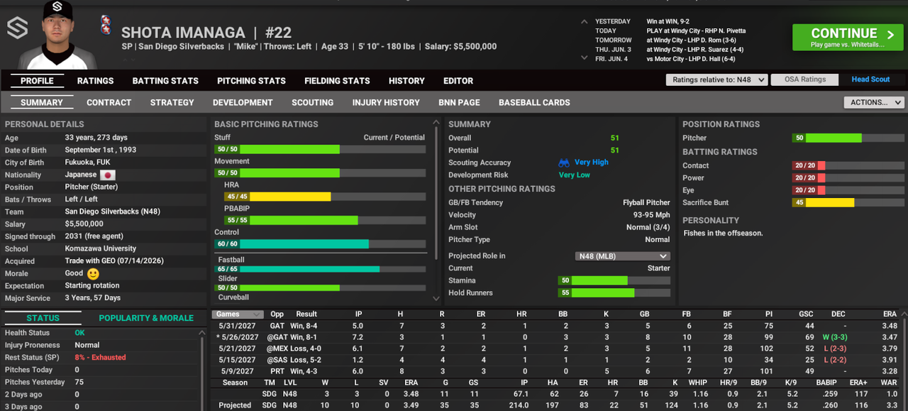------------------------------ L. Webb - 75, 42, 32, 55, 52, M. Scherzer - 57, 40, 46, 47, 50, A. Nola - 47, 59, 56, 75, 28, S. Aldegheri - 49, 60, 61, 62, 46 J. Musgrove - 69, 40, 22, 19, |