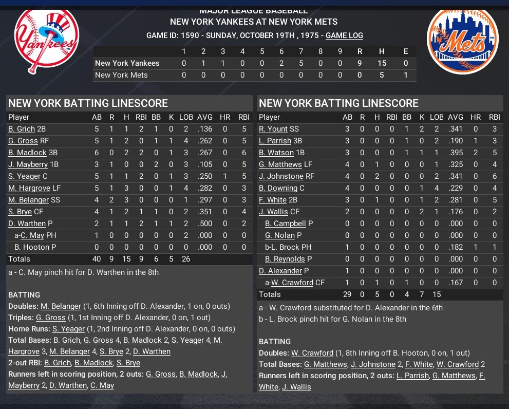 FBL news: Oct. 19 -- World Series Game 4 - New York Yankees 9, New York Mets 0, Series tied 2-2