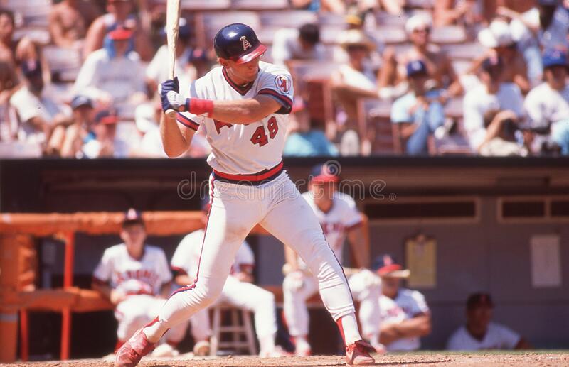Brian Dorsett was yet another 1980s backup catcher. Dorsett took a while to get his bat going in the minors, but he made it to the bigs for a look with the 1987 Indians. Fortunately for his career and his sanity, Dorsett wound up in the Angels system in the following season and he had an outstanding year at AAA Edmonton. Dorsett hit just .091 for the Angels in '88, but he hung around on the fringes of the big leagues until 1996 without ever getting a chance to play regularly. This was a pity, because Dorsett's AAA stats suggest that he could hit; he posted consistently good slugging and OBP percentages at that level. Dorsett has been elusive in an Angels uniform, but I found the following image on dreamstime.com.