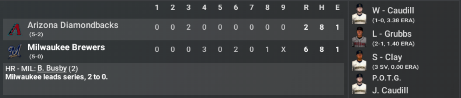Joe Caudill was steady and efficient, the kind of pitcher who never seems rushed by the moment. Seven innings, two runs, no panic, no wasted motion. He mixed his fastball and change with just enough edge to keep the Arizona bats guessing. When he left after the seventh, the roof at American Family Field might as well have been closed on the Diamondbacks’ hopes for the night. The Brewers didn’t overpower so much as wear down their opponent. A two-out, two-run single from Antonio de Luna in the fourth — the kind of hit that changes a series — put Milwaukee ahead for good. Shortstop Brad Busby followed later with a towering eighth-inning home run, a punctuation mark on another methodical Brewers performance. It’s easy to forget that this club doesn’t have the flashiest lineup in baseball. They don’t have the swagger of the Yankees or the history of the Dodgers. But what they do have is balance — a deep rotation, airtight defense, timely hitting, and a bullpen that’s been nearly untouchable. Closer Joe Clay slammed the door again tonight, striking out four of the six batters he faced for his third postseason save. So now, as the series shifts to the desert, the Brewers lead two games to none — and the rest of baseball is taking notice. This is a team that hasn’t stumbled once in October, a team that’s playing with focus, unity, and a quiet, relentless confidence. It’s been said that baseball rewards consistency more than brilliance. Right now, the Milwaukee Brewers are proving they can have both. Five games, five wins, and the look of a club that doesn’t just want to reach the World Series… they want to own it. |