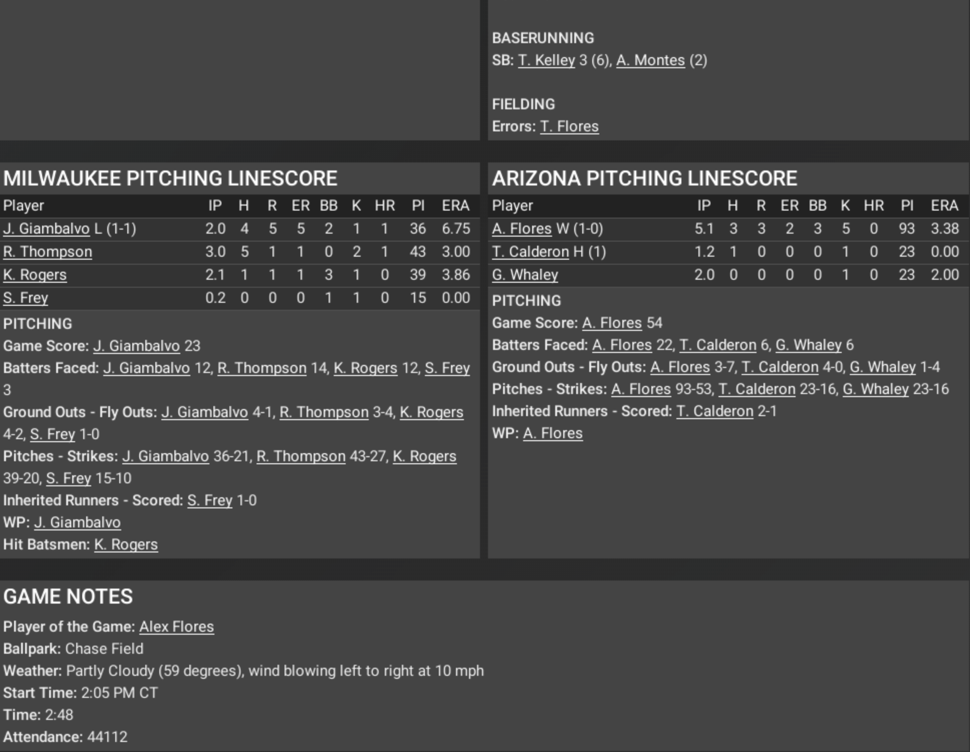 After dropping the first two games of the National League Championship Series, Arizona needed something—anything—to turn the tide. And on this day, they got it. Behind the left arm of Alex Flores and the timely hitting of a lineup that looked as loose as it has all October, the Diamondbacks beat the mighty Milwaukee Brewers, 7 to 3. Flores wasn’t overpowering, but he was poised—five and a third innings, just three hits, and the calm of a man mowing his own lawn. He handed the game to his bullpen, and they did the rest, shutting the door quietly but firmly. The first inning set the tone. With the bases loaded and the crowd humming, Tony Flores—a man with a name made for the moment—lashed a two-run double down the line in right. That made it 2–0, and the fans rose as one, sensing that maybe, just maybe, this series wasn’t over yet. There was thunder too—a home run from young J. Gonzalez in the third, a majestic drive from A. Montes an inning later. Ten hits, seven runs, and for the first time all week, Arizona looked like the team that had battled their way here. Milwaukee, for their part, looked human. J. Giambalvo, so steady all year, never found his rhythm. The Brewers scratched together a few runs, a double here, a stolen base there, but nothing that could stem the tide. As the final out settled into P. Jackson’s glove, you could almost hear Vin pause, smile, and say, “And so the Diamondbacks, down two games to none, remind us once again that in baseball—as in life—it isn’t over until it’s over.” Tomorrow, they’ll do it again at Chase Field. And if the sound of the crowd tonight is any indication, the desert isn’t done dreaming just yet. |