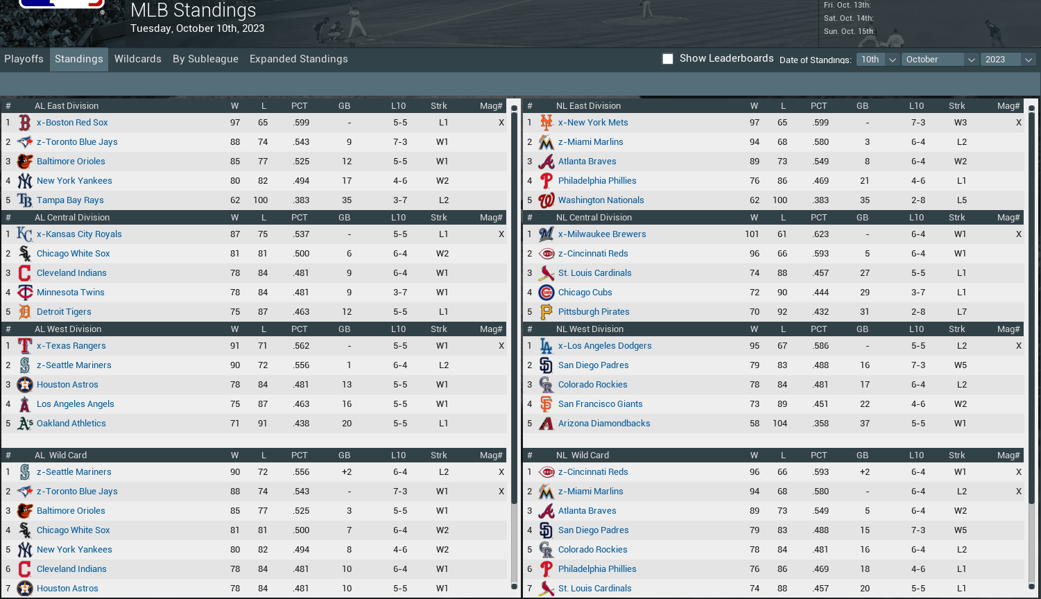 Standings and Stats end of regular season 2023.