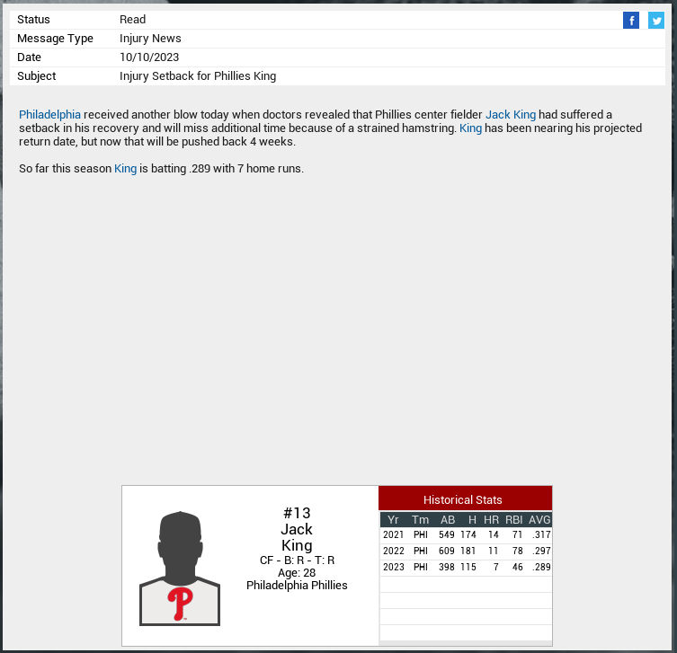 Man I wish King would've been more durable. This is his first bad season full of injuries. I hope the injury bug doesn't spread to more seasons or the rest of the guys.