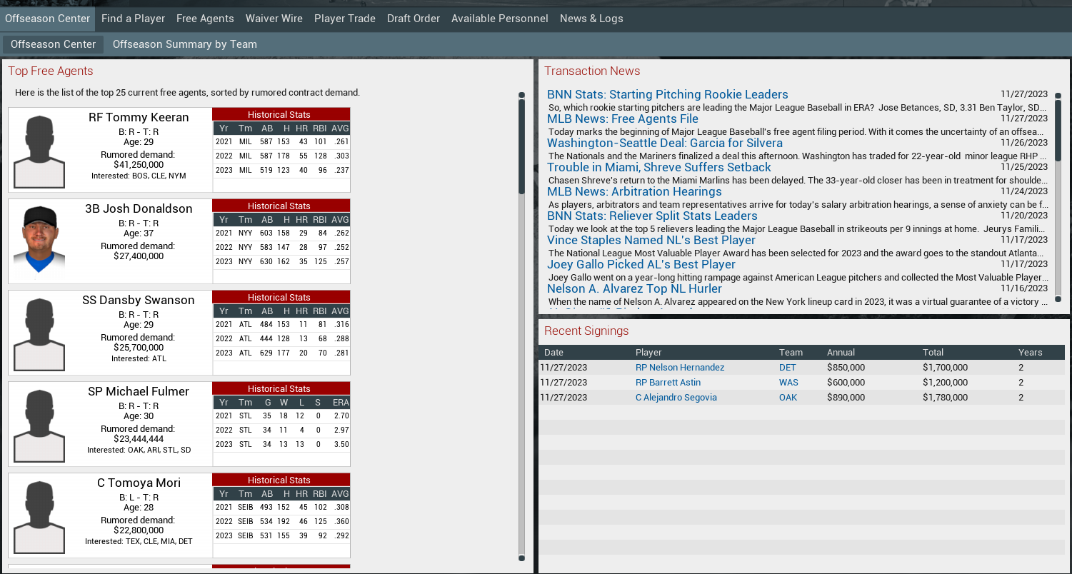 Ok, Keeran, 4 offers...who you want to favor? I'll pull the others and sim a day at a time till you decide to sign or if you have a no other offers, I'll let the CPU sign you.
