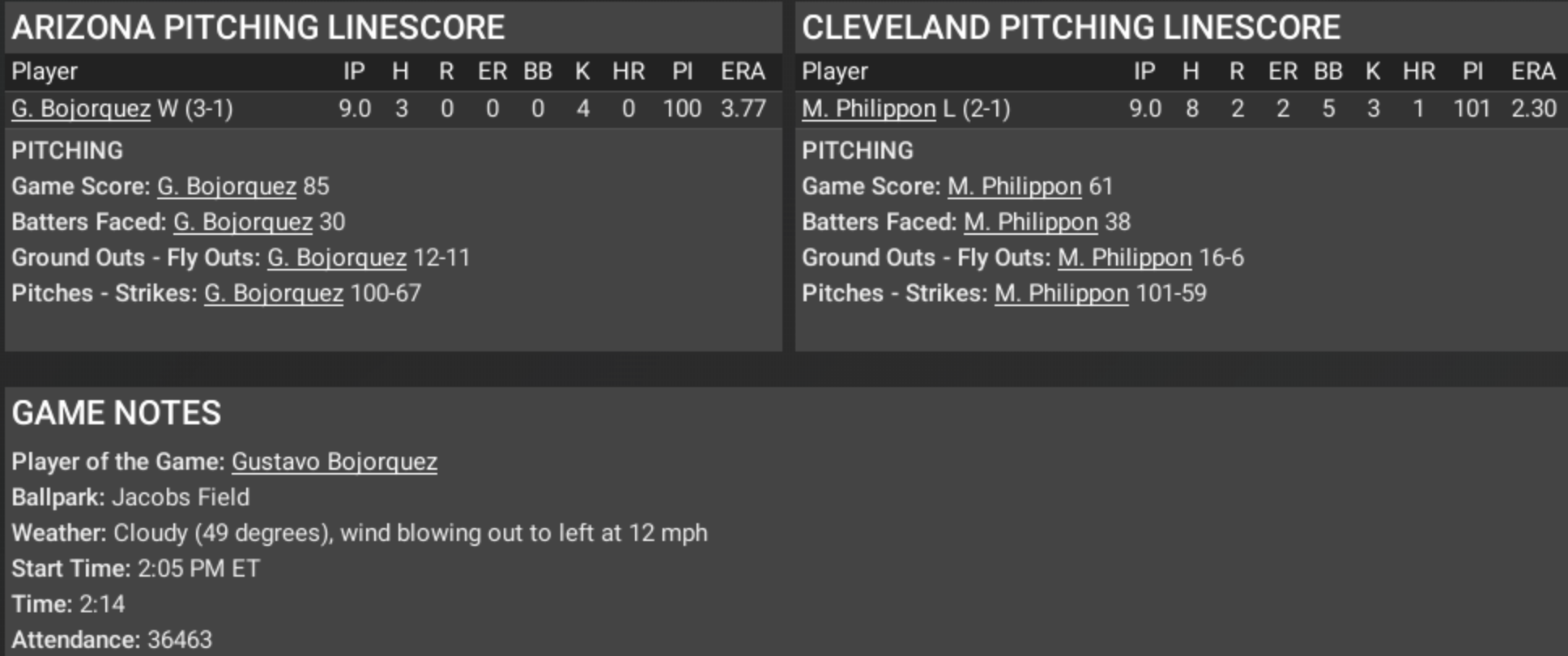 “On a crisp October afternoon in Cleveland — the kind that makes the breath visible and the gloves a little stiffer — the Arizona Diamondbacks turned back the clock and leaned on experience. And in doing so, they inched two steps closer to a title.”