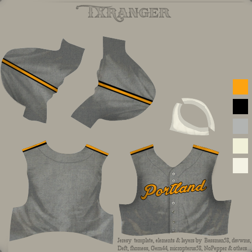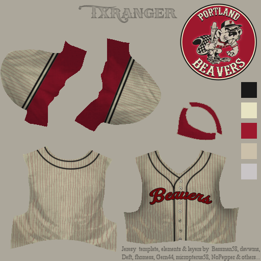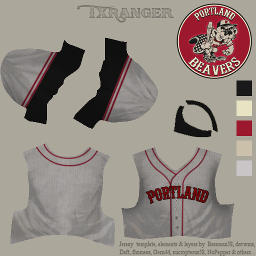 1. Add a black hat and a red hat. 2. Make red and black jerseys, the red with Portland and the black with Beavers. 3. Add the beaver logo patch to the left sleeve. 4. Add the beaver logo patch to the left sleeve on the white and gray jerseys. Last edited by JayBBluejay; 10-06-2014 at 10:24 PM. |