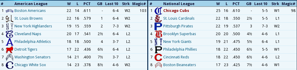 ***Roger Bresnahan CF, Honus Wagner SS, Charlie Geggus SP, and Jesse Stoval P are all currently injured. Last edited by Nick Soulis; 08-28-2012 at 01:02 PM. |