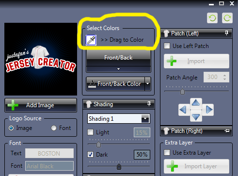 Doesn't the Jersey Creator have an eye dropper that you can use to get exact colors from logos?