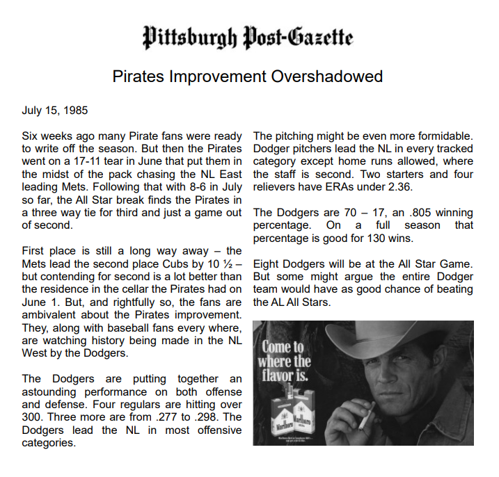 The Pirates aren't really the news at the All Star break, even in Pittsburgh.