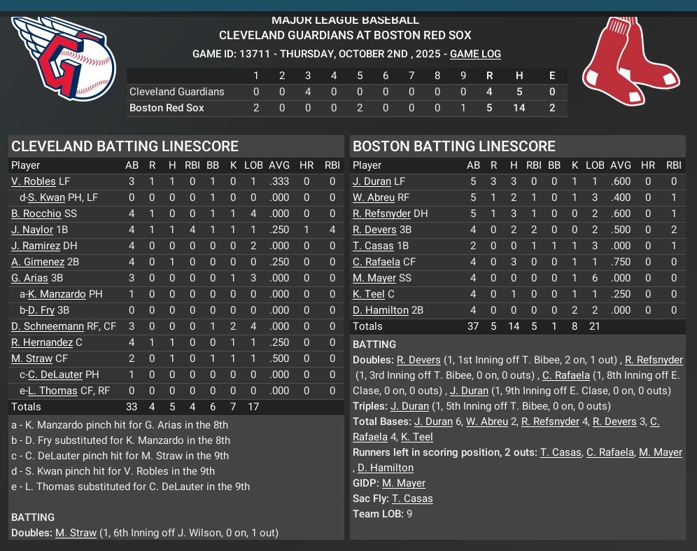 MLB news: Oct. 3 -- AL Wild-Card Series Game 2 - Cleveland 3, Boston 1, Series tied 1-1