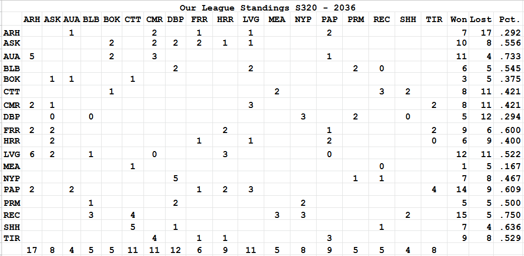 That's why I called it "penalty." It's not fair to the other teams, but it's what we've got to work with. There's no way around it, if the games get missed. The stats compilers are doing a great job, and for what OL is paying them, they are amazing. Plus, they also have to contend with OOTP's random drops and changes.