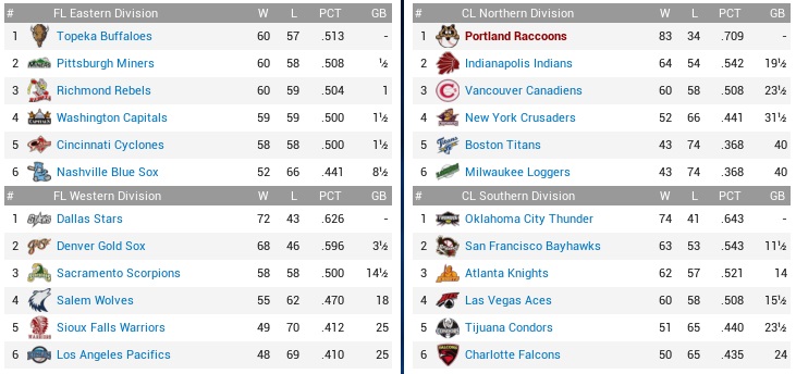 Raccoons (83-34) vs. Buffaloes (60-57) – August 13-15, 2047