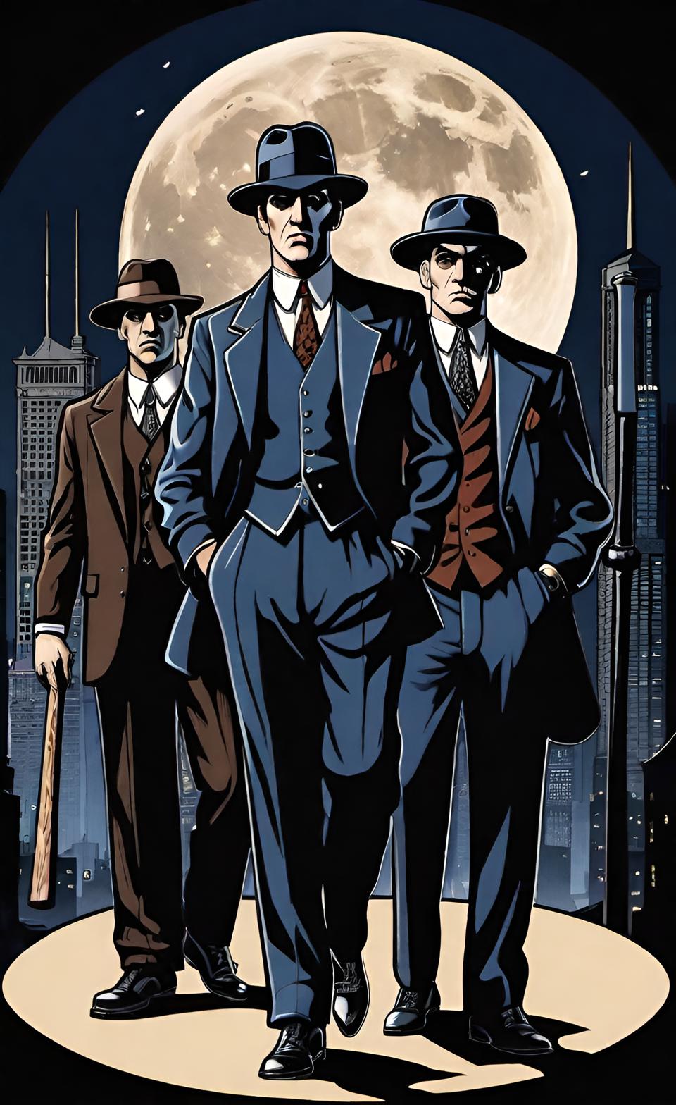 Anyway, here is the related text prompt used to generate the pictures below, or at least a text prompt that is most likely rather close to it, through the dream.ai website: Chicago Mobsters mostly circular baseball logo, menacing mobsters holding big baseball bats in stylish fedoras & full-body suits & trousers & dress shoes, mostly in black & white & brown & navy, mostly gothic-style text, Art Nouveau-style urban Chicago night setting, eerie-looking moon, insanely detailed, ultrarealistic, waist-up view The gothic-style text mentioned is my callback here to the Chicago White Sox's usual text style used for many of their previous historical and/or current team-related looks, for your information. Just so you know, folks. CD out. P.S. Please feel quite free to design items for this team as you like, of course, folks. That is all. CD out.