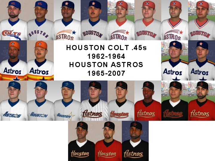 Some jerseys, like the Astros rainbow jerseys, need more than the primary, secondary, and striping colors. In those cases, you can manually create your compiled jersey image, load it into the game, and you'll have your jersey. The work I'm posting here is all from compiled jersey images. Once all 30 teams are finished, I'll post the zip file and you'll be able to use any of these jerseys without worrying about whether or not you have the right jersey template. Hats have a default template and no option to choose a different template from within the game. To do either of these, you need to manually create the compile cap image yourself and then add the striping or change the colors of the panels. Changing panel colors is pretty easy, but striping is a bit more challenging because of the way the compiled image wraps on the player's head. You can use straight lines on the front cap panel, but the side panels get a lot of curve to them. The stripes on the Pirates caps in this thread actually have very warped side panel stripes in order to get them to show up straight in the player photo.