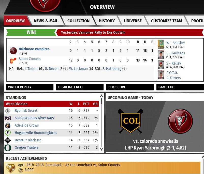 My team has coincidentally had two streaks of exactly 8 games. I don't know if it's a sliding scale depending on how long the streak is, or if I just hit the achievement mark exactly. Last edited by Jamee999; 11-06-2018 at 12:13 AM. |