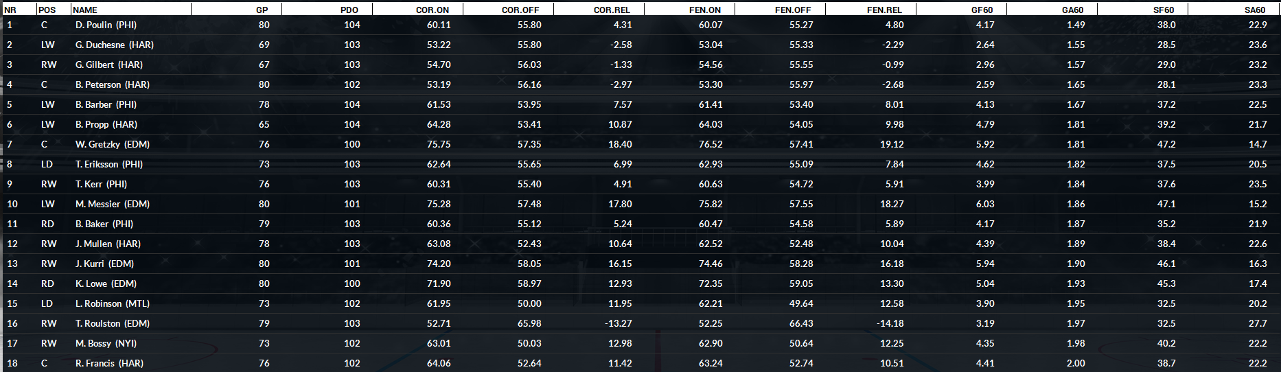 My changes seem to work, and Hartford mounted a valiant effort in the 2nd half of the season to go above .500 and finish the year strong. Even without Mark Howe for 2 months. But we missed the playoffs! By 1 point! It came down to the final game and we lost to the Bruins, where a win would have sent us through. We improved a lot, but Quebec had a great second half too. I can't complain too much as Quebec was the better team, with a noticeably better goal difference. But man! The Adams Division is tough. Even tougher than I expected. Without a wildcard system like the one that exists today, you can have crazy scenarios like this one where my 83 point Whalers miss out and the 61/60 point Penguins/Canucks get in. Remember, 16/21 teams make the playoffs, so it's bizarre the Whalers are one of the teams who miss out. I still like this old playoff system though, to be honest. Fun, with good rivalries and stories. I've attached the final standings and point totals. Blaine Stoughton had a fantastic year with 54 goals and 105 points. Mike Rogers was injured for a bit which hindered his chances of reaching 100 points. League-wide, it was the Gretzky show again. But the Montreal pairing of Robinson/Langway was ridiculous. We're still not quite there yet, and I want to re-tool for next year and give it another go. We've been hit by some misfortune but I still like our underlying philosophy at Hartford. Last edited by Argonaut; 07-14-2020 at 02:55 PM. |