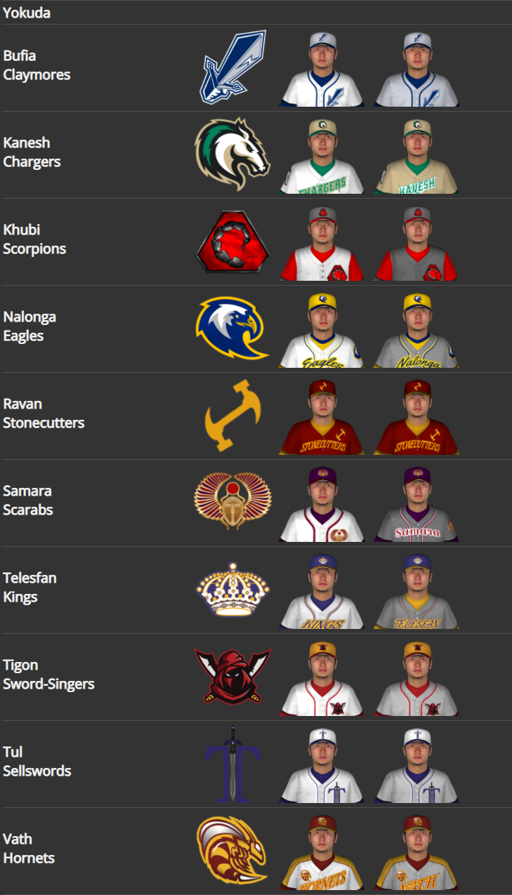 Here are the teams of the Nirn Baseball Association |
