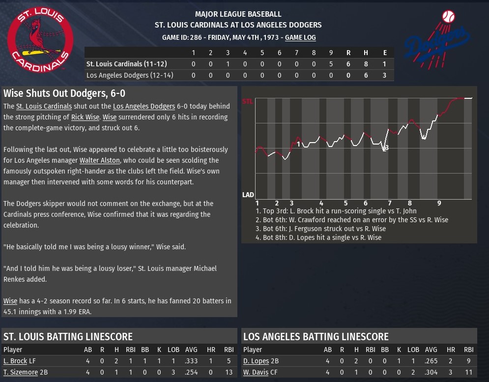 Cards 73: May 4 -- St. Louis 6, L.A. Dodgers 0