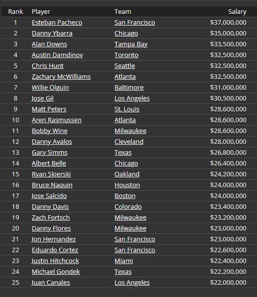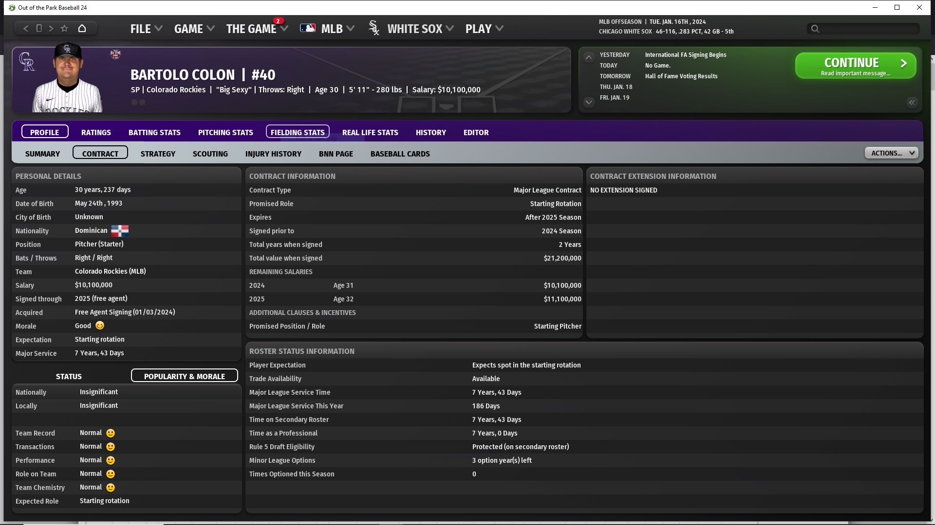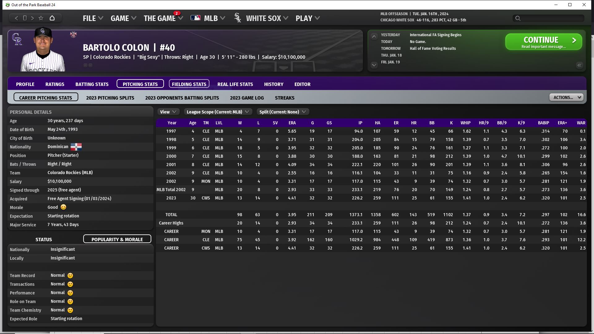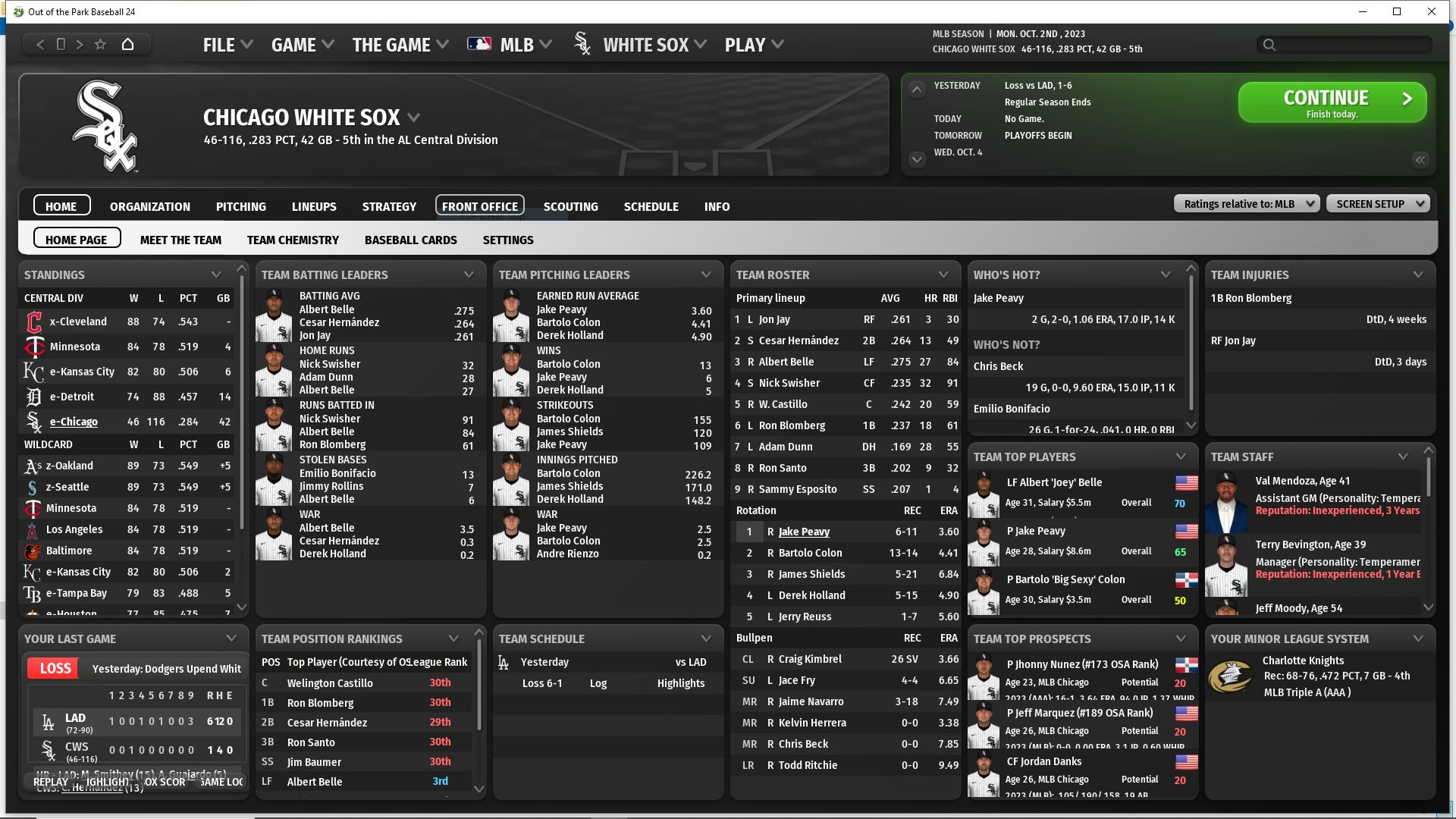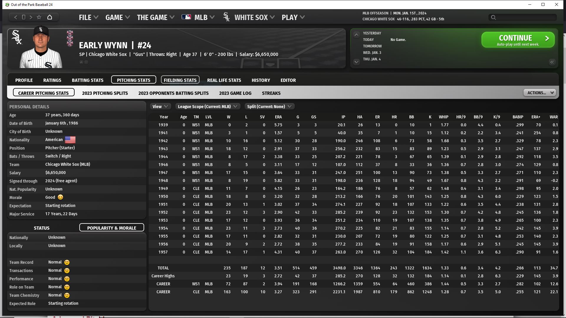 Early Wynn might be in the POTY race. Dotson is our top ranked prospect at 31. We are 28th in payroll. Albert Belle is the 10th highest paid player.