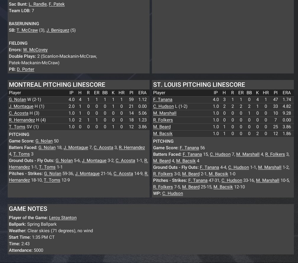 FBL news: March 29 -- Spring Training -- Montreal Expos 3, St. Louis Cardinals 2, (10-15)