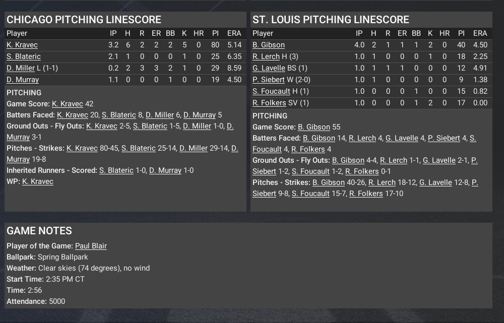 FBL news: April 1 -- Spring Training -- St. Louis Cardinals 5, Chicago Cubs 2, (13-15)