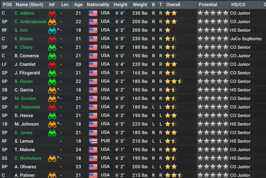 I am controlling lineups, depth charts and development focus for all the minors as well. I will allow the managers to set player strategies. I want an organization wide approach to pitch counts, where we have them, and as the GM I think it is my job to handle player development off the field. Financially the league is where I want it to stay. The super star typical salary is 10 million, stars around 7.5 with good players at 5.8 and average players around 2 million. IBL minimum salary is 226K. No salary cap, media money is based on a teams market, owners control budgets and revenue sharing is enabled (48%). Player development baseline is 710K with scouting budgets baseline at 442K. I've alloted 1.57 million for our dev budget, 795K for our draft budget and the league The IBL roster size is set at 27 and the secondary rosters are 40. Budgets are averaging 60+ million, with payrolls in the mid 50s right now. Free agency is at 7 years service time. Players can receive 1 qualifying offer only with draft pick compensation based on the 2017 CBA. Minor league players qualify for free agency after 6 years service time.