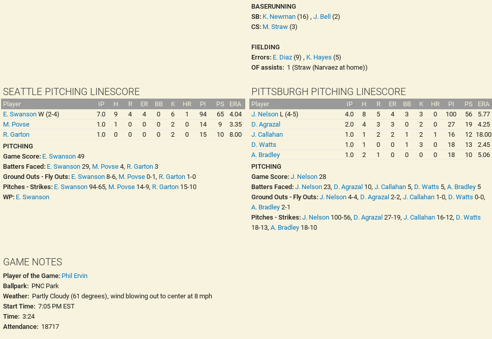 We got swept! SP Rick Porcello scattered nine Pirates hits on his way to win #18 on the season.