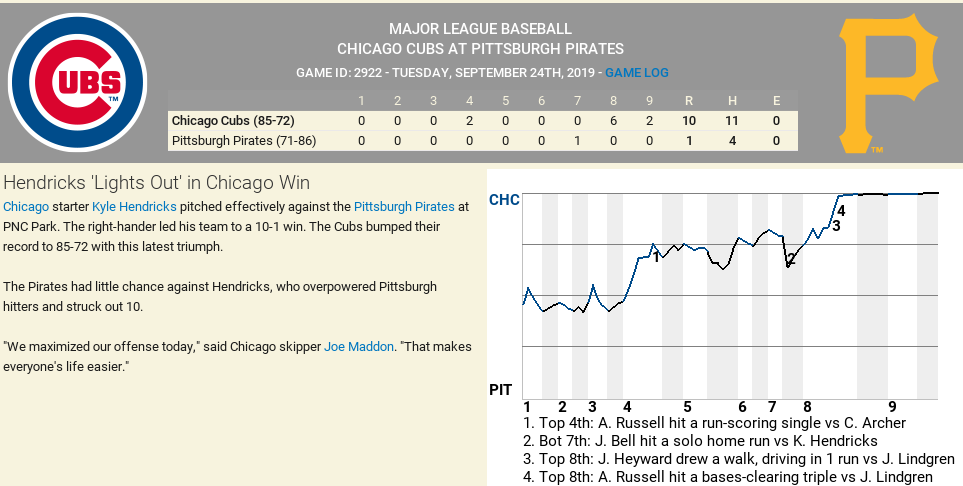 Game #159 vs. Chicago(N) Box Score and MLB news