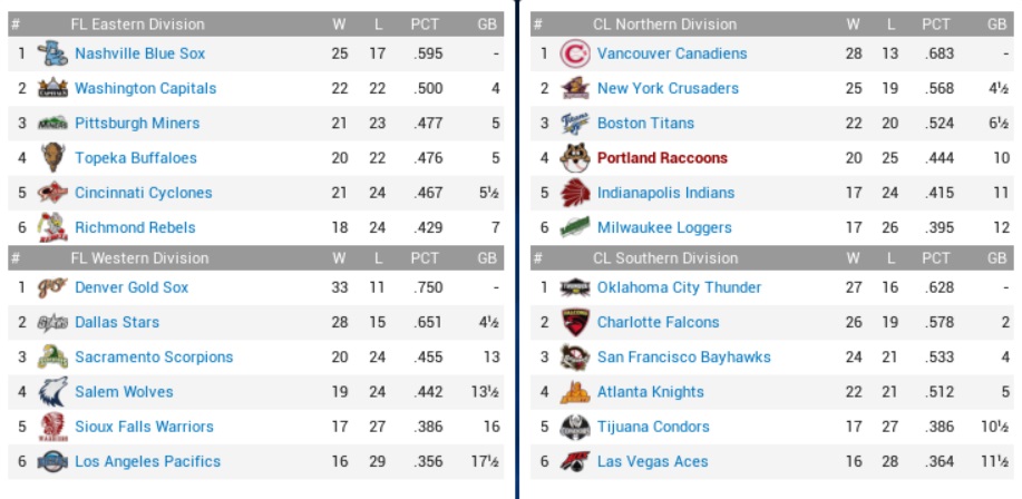 Raccoons (13-19) vs. Pacifics (12-20) – May 9-11, 2050