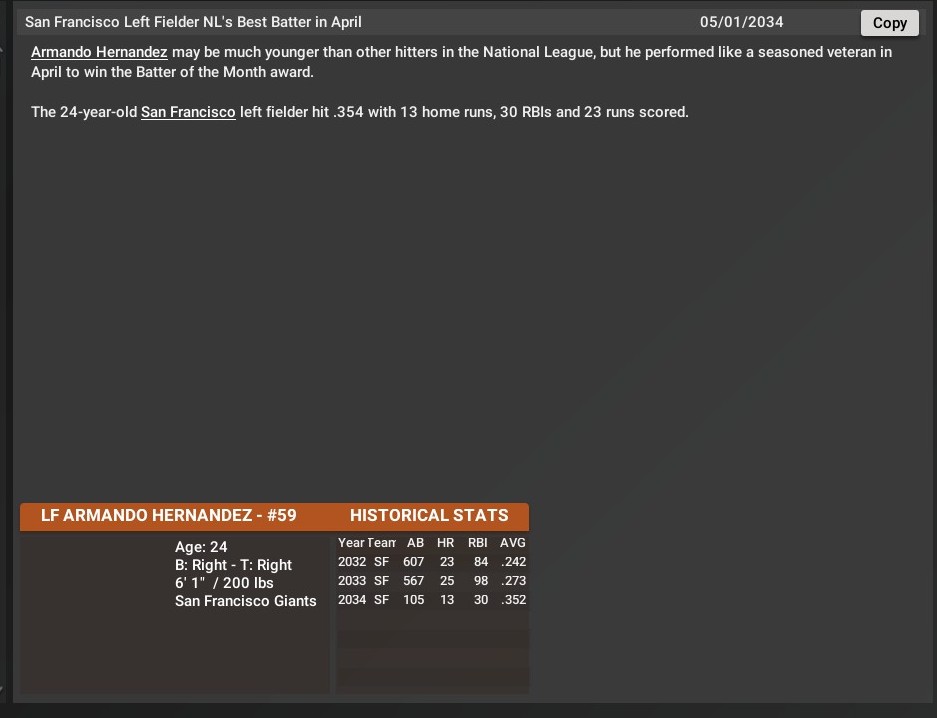 Record: 14-8, 1st, 1.5 GA Chicago Cubs