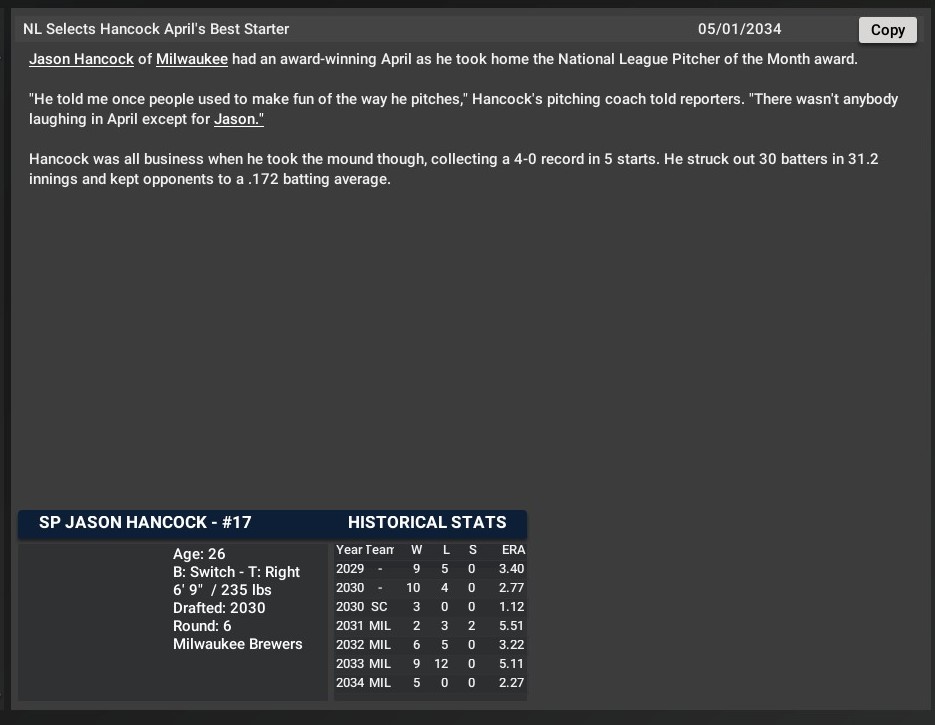 Record: 10-6, 2nd, 1 GB Chicago Cubs