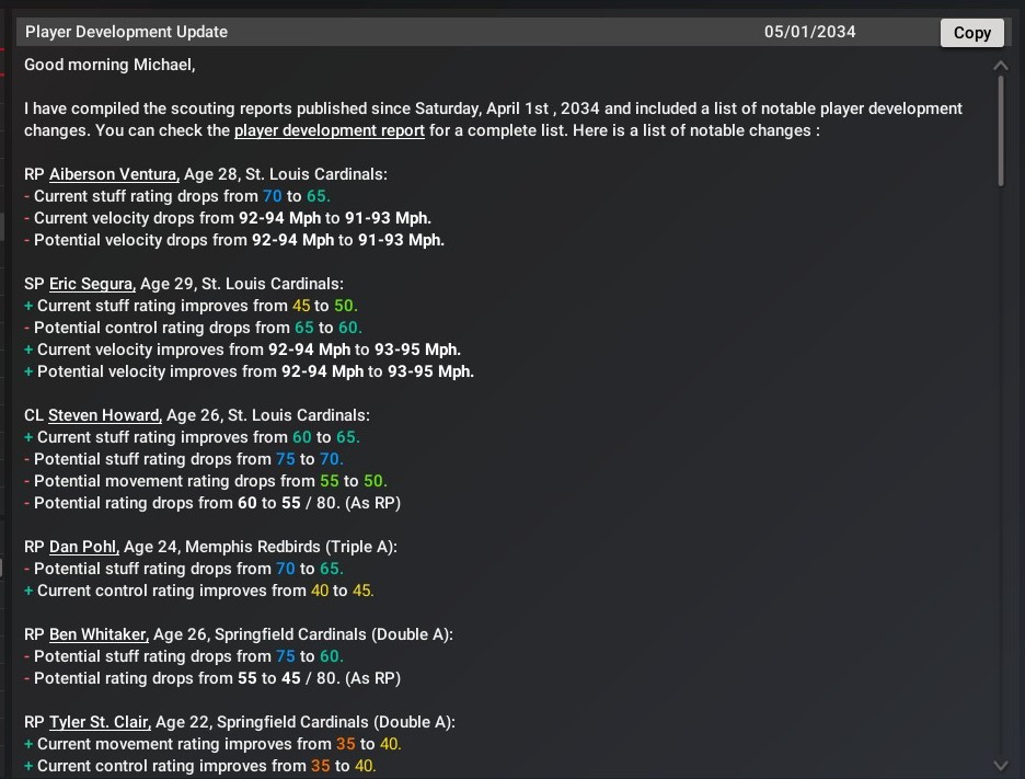 Cards news: May 1 -- Player Development Report 2