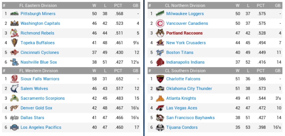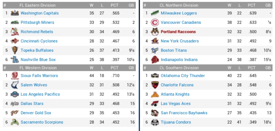 Raccoons (39-37) @ Thunder (47-28) – June 29-July 1, 2054