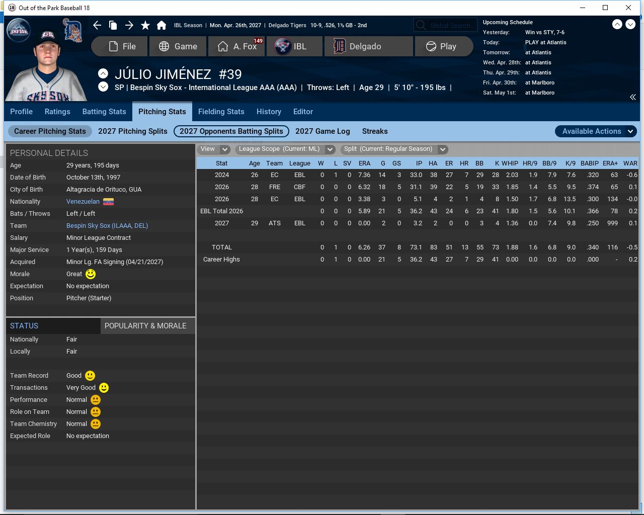 Delgado Tigers traded LF Paul Simmons, RF Leo Ringlostette & minor league 3B Stan Cao to the Chevy Cobras for RP Juan Garcia, CF Kalea Lahela & a PTBNL ( C George Cain, will appear in the 2028 rookie draft)