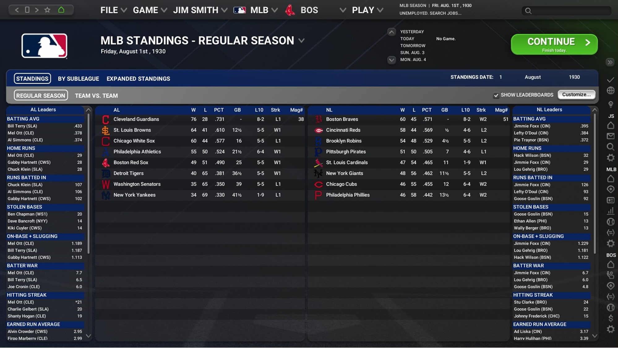 3B Jimmie Foxx of the Cincinnati Reds wins the NL Batter of the Month Award. SP Wes Ferrell of the St. Louis Browns wins the AL Pitcher of the Month Award. SP Ted Lyons of the St. Louis Cardinals wins the NL Pitcher of the Month Award. RF George Watkins of the Chicago White Sox wins the AL Rookie of the Month Award. RP Charlie Perkins of the Cincinnati Reds wins the NL Rookie of the Month Award. First-place teams AL: Cleveland Guardians (34-117 games ahead of the Chicago White Sox) NL: Cincinnati Reds (32-146 games ahead of the Pittsburgh Pirates) |