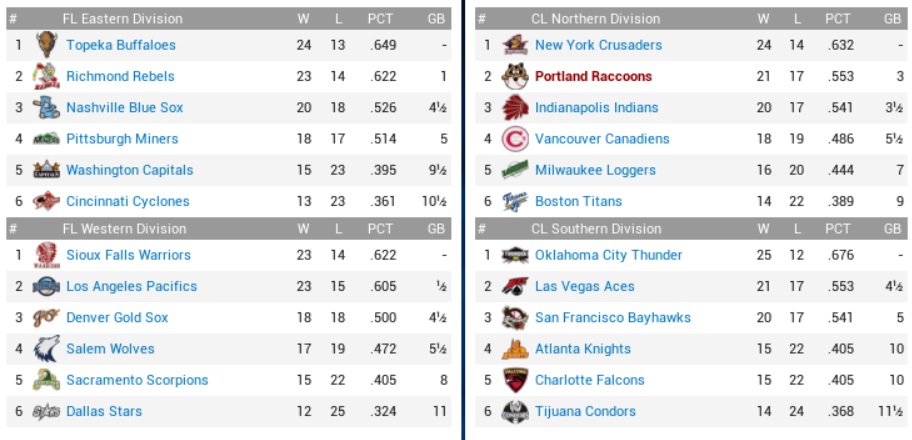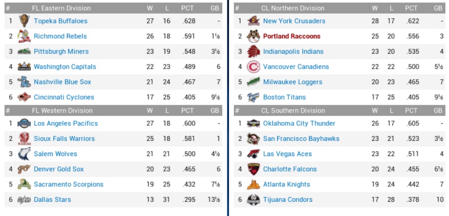 Raccoons (37-32) @ Loggers (26-42) – June 23-25, 2059