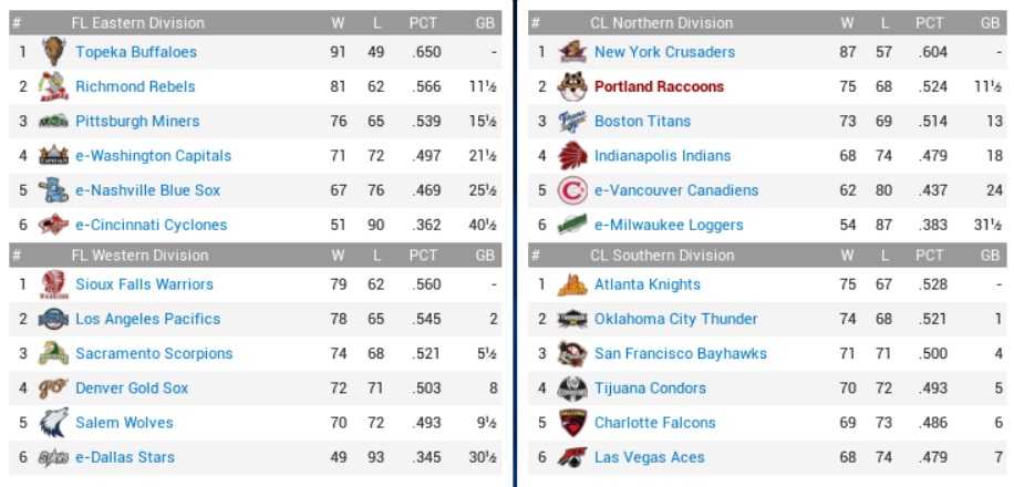 Raccoons (84-71) @ Titans (80-75) – September 29-October 2, 2059