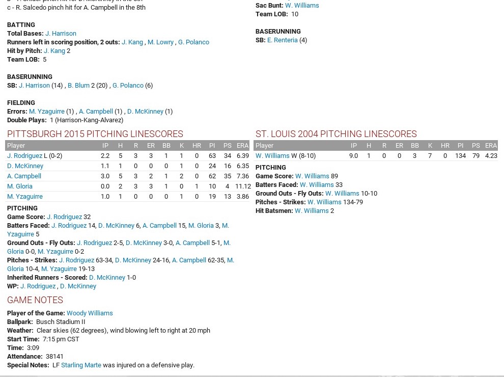 Rec/Std: 67-73, 4th, 8.5 GB Cincinnati W: Williams 8-10, 4.23. L: Rodriguez 0-1, 6.39. HR: Renteria 9. Player of the game: Woody Williams through a one-hit shutout, striking out seven and walking three. The only hit he allowed was a Josh Harrison single with no outs in the fourth inning. Last edited by rink23; 04-04-2018 at 04:58 AM. |