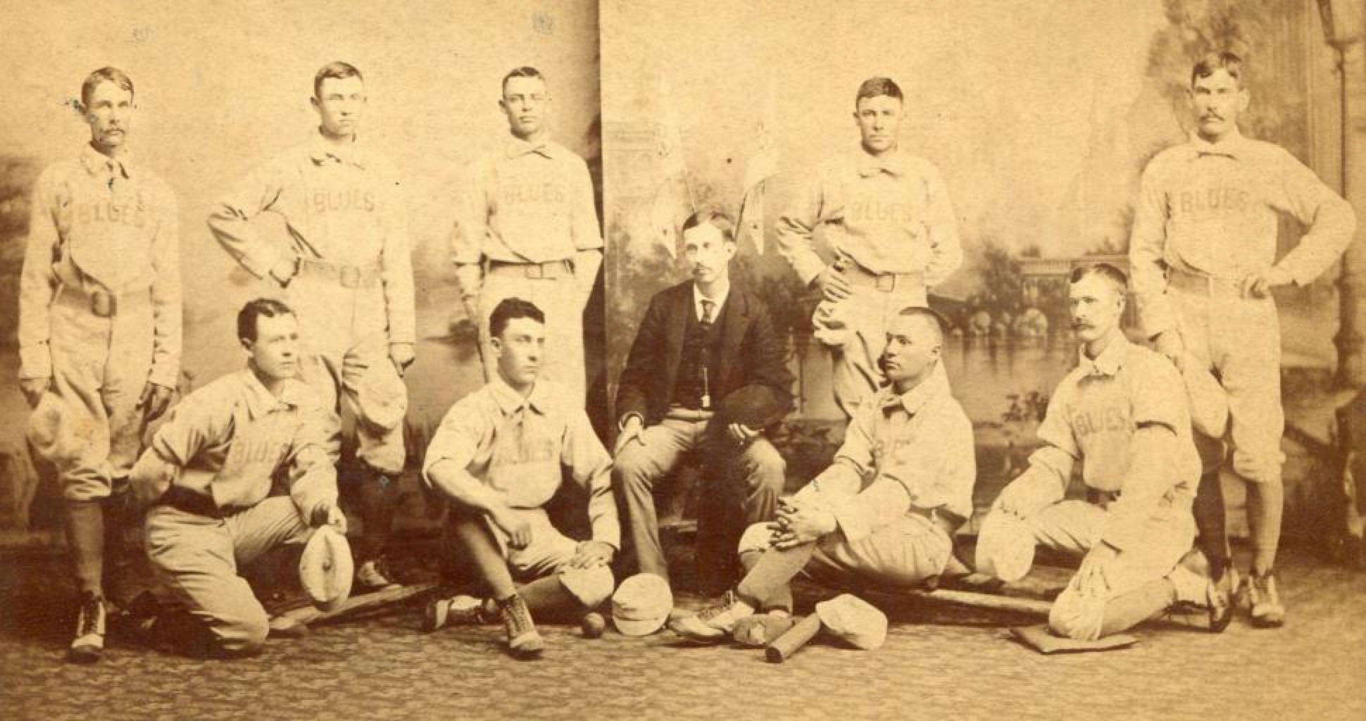 I found a blurb from the Terre Haute newspaper of 1883 noting that the photo of the club was on display in the window at Alexander & Brown. It was on May 20, 1883. Given the name Blues on the jersey, that seems to place the photo in May 1883, not 1884.