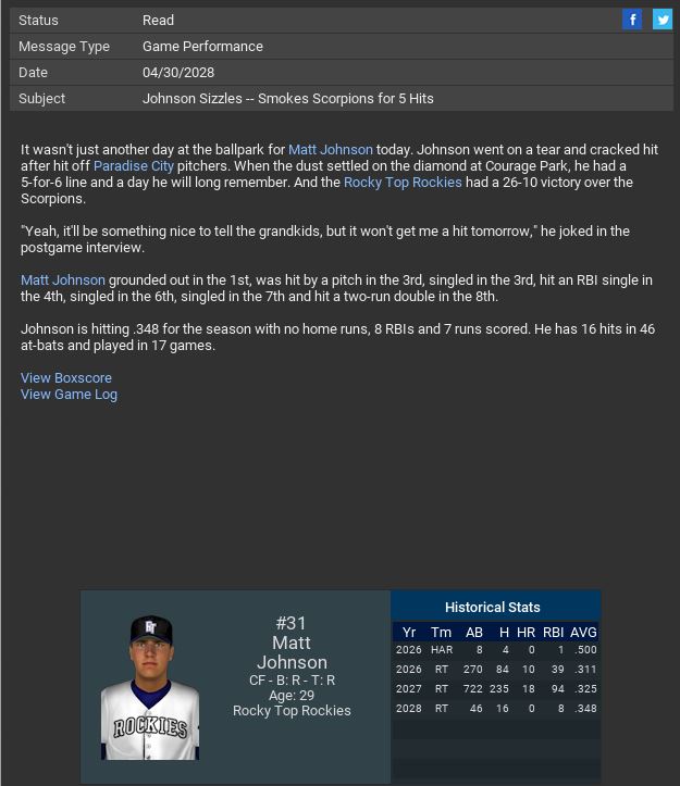 Rocky Top CF Matt Johnson had a 5 Hit game.