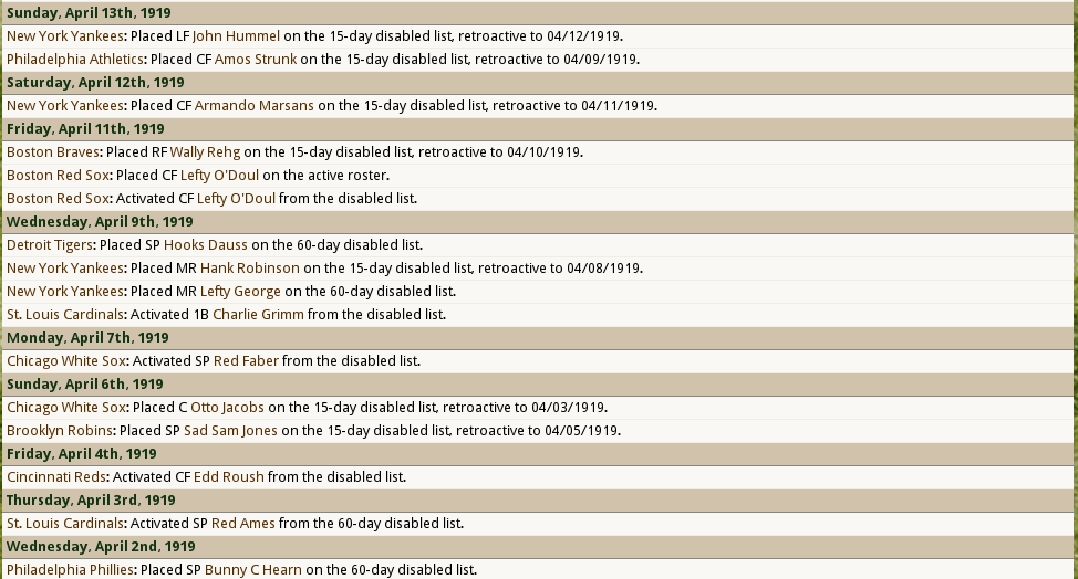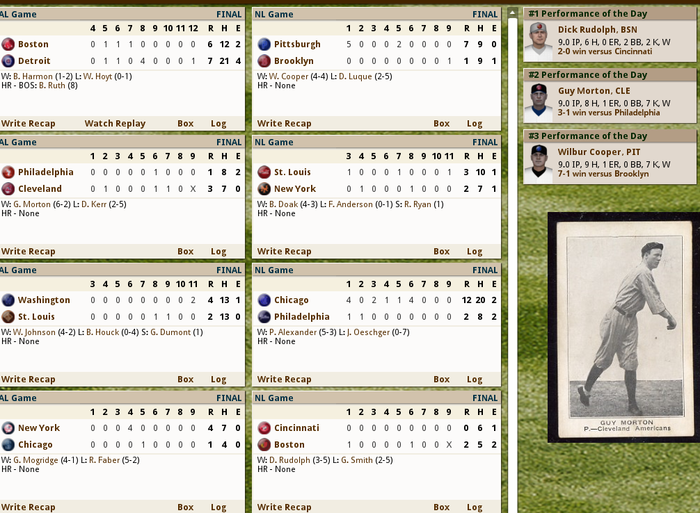 Ruth earned his 3rd win of the year,he also has 2 saves in 5 total apperances. Going 2-2 Babe raised his season average to .314. The Box Score ![]() Today's Games ![]() n