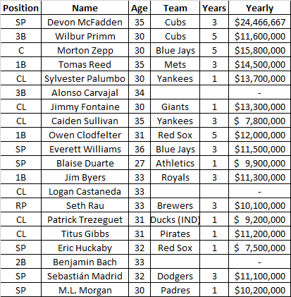The top free agent is Librado Dorado, coming off his Pitcher of the Year award season. Jon Folsom is also on the market |