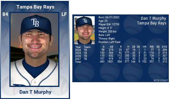 The Tampa Rays infielder Daniel Murphy took home AL Player of the week. Murph hit 609 with 5 homers and 12 RBI's. He is hitting .320 this year as the Rays are 75-39 in 4th place in the AL Atlantic trailing the first place Richmond Gamecocks by 4 games.